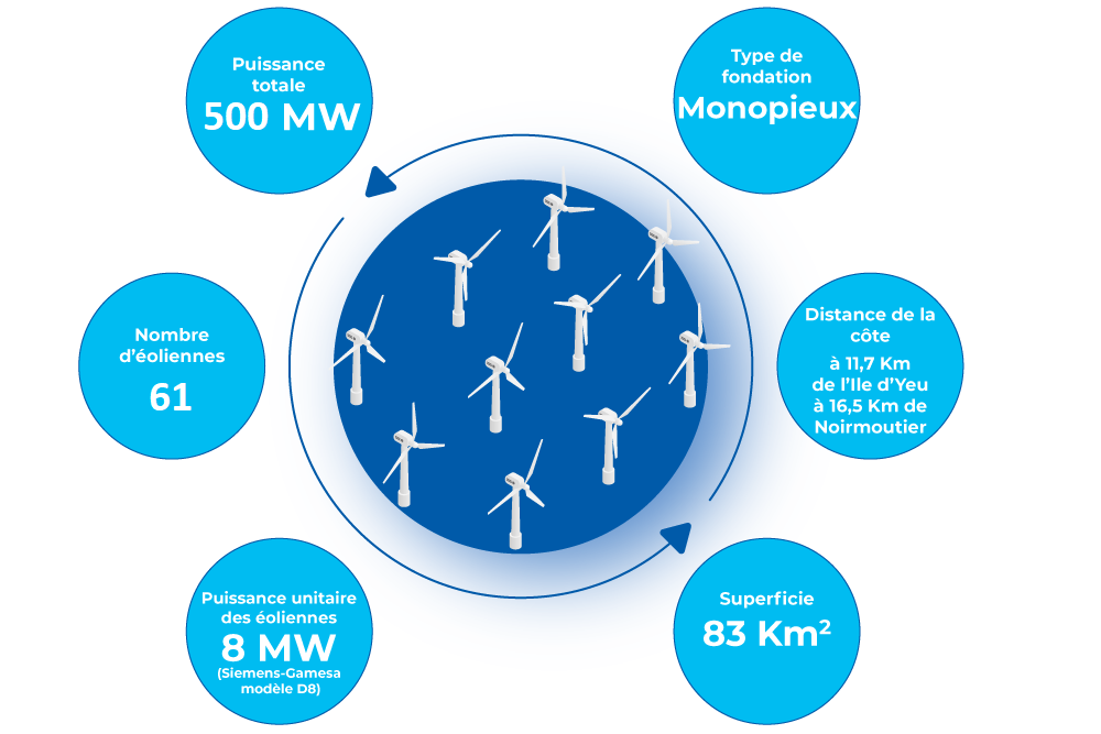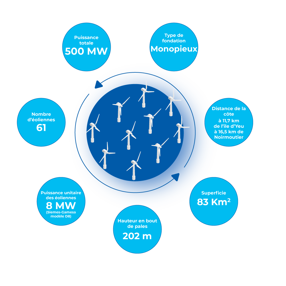Le parc éolien en mer posé des iles d'Yeu et de Noirmoutier est issu du second appel d’offres lancé en 2013.