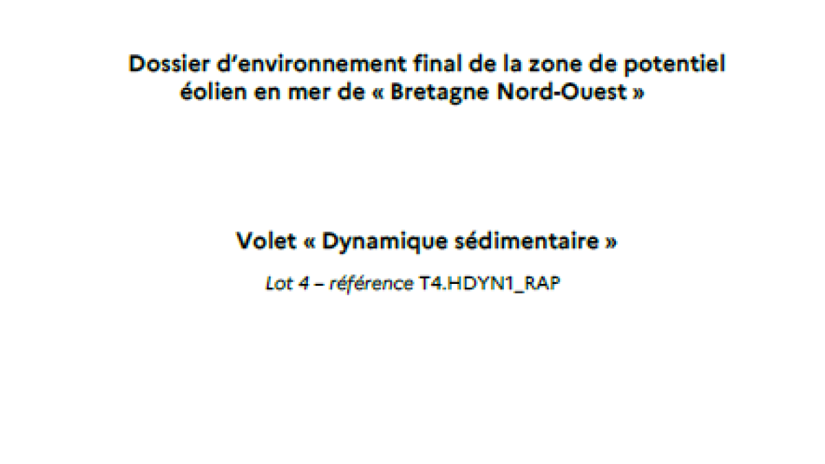 Ce rapport présente une analyse des conditions de mise en mouvement des sédiments et l’analyse des morphologies sédimentaires potentiellement dynamiques dans la zone d’étude pour l'éolien en mer nommée « Bretagne Nord Ouest »